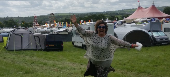 There we all were, somewhere in a field in Bristol, the forty, fifty and even sixty-somethings, some dressed in what looked like rambling gear, others in Lycra that really shouldn’t be seen in the vicinity of a muffin top. There were quite a few bald heads going nicely pink in the sun. In the campsite, posh campervans and tents with blow up frames. We were armed with loo roll and anti-bacterial wet wipes – and I got my face painted for the first time ever. Ain’t no stopping us now….